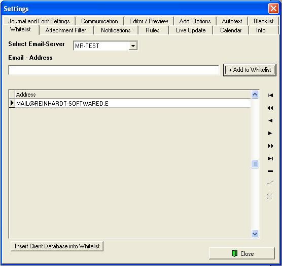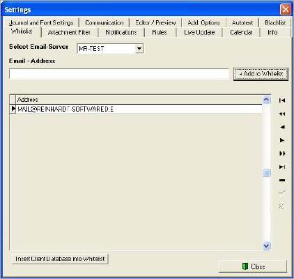 The Blacklist blocks all messages from known but unwanted senders, messages with suspicious subjects or certain message contents. Why let all the rest go through and fill up your journals ? The new Whitelist is the answer to Spam mails and supplements the existing Blacklist. It is a list of the senders you accept. To make life easier, we preload the Whitelist with your address book.
